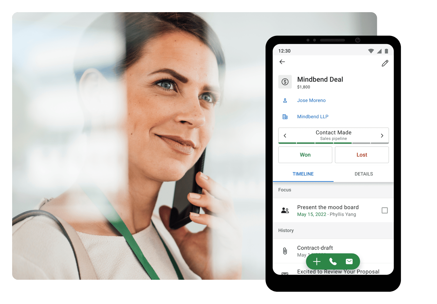 Easily track sales conversations and tasks in one tool, giving your salespeople the context they need to follow up faster.