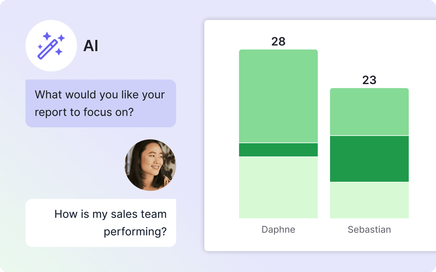 Powered by OpenAI, our new AI-powered reporting feature – found within Insights – enables you to instantly generate insightful sales reports via text input in your own words. Alternatively, you can choose from multiple prompts if you need help getting started – no more complex setups, no more guesswork – just instant insights at your fingertips.