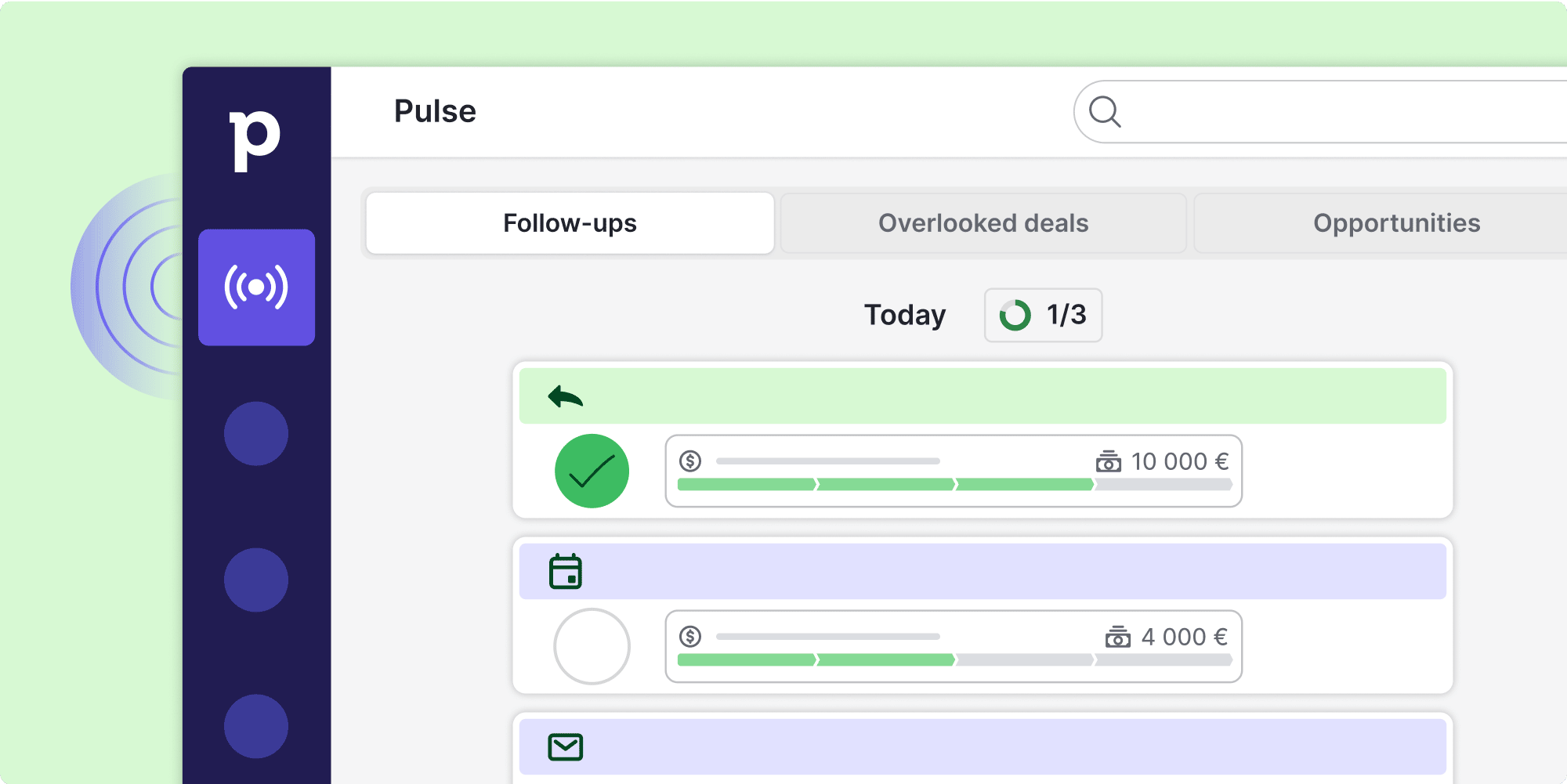 Pipedrive Pulse enables you to score and prioritise your best-fit leads and identify your next best action.